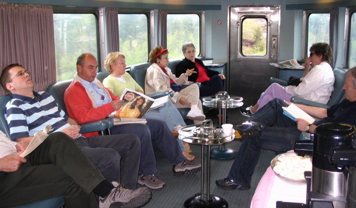 The lower level of the Park Car has two lounge areas, one for relaxing and meeting other passengers (or snoozing); the other includes a bar staffed by a VIA employee who will be happy to serve you the beverage of your choice.
