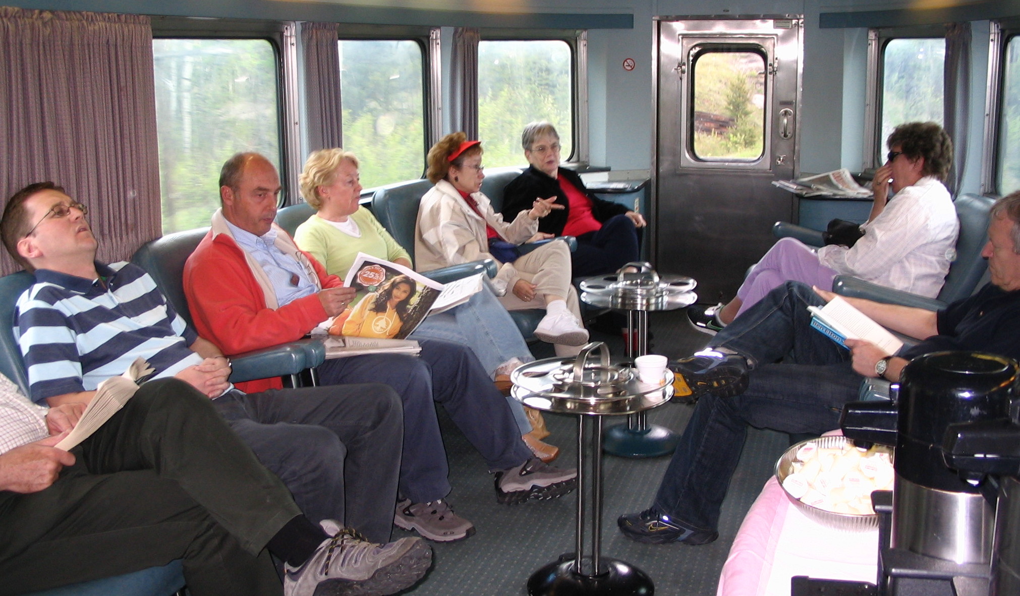 Three times a day, you can enjoy this varied and wonderful scenery from a table in the Canadian’s dining car, where the menu varies from day to day, the food is of gourmet quality and nicely served. Frankly, the whole experience is several cuts above the best that Amtrak is able to do. (Pause here to give a raspberry to Congressman John Mica.)