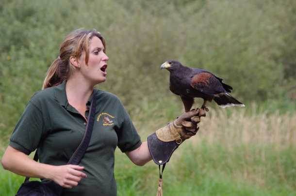 The highlight was a flying demonstration, with a number of birds gliding effortlessly between two of the handlers. There was a Harris Hawk (above), a barn owl, a bald eagle and a Peregrine falcon, a bird that routinely flies at more than 100 mph.
