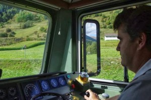 His name is Martin Gasser and he’s a Swiss railroad engineer — they call them”drivers” in this part of the world. For a few days every week, he’s at the controls of the locomotive hauling the famous Glacier Express as it twists and turns for 180 miles through the Swiss Alps from St. Moritz to Zermatt. And for an unforgettable hour and 15 minutes on this glorious Fall afternoon, I was permitted to join him.